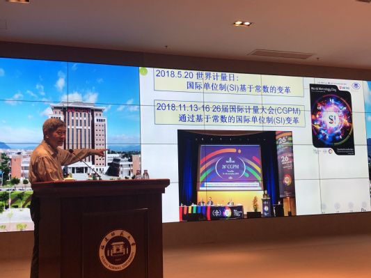 12月3日上午,中国计量科学研究院李天初院士应邀为光电与信息工程学院本科生开设了一场题为“国际基本单位常数化和中国计量院的应对研究”的讲座。李院士结合中国计量院的研究,用通俗易懂的语言介绍了光学与计量的关系、时间计量的科学知识、长度单位米(m)定义的演变过程和精准定义方式以及与光学的关系,并向与会师生介绍了今年国际计量大会(CGPM)的有关情况。讲座由国家级特聘专家谭小地教授主持,光电与信息工程学院党政负责人和部分师生代表共200多人参加本次讲座。本场报告紧紧围绕理论前沿和创新成果,重点突出、内容丰富,深受与会师生好评。
