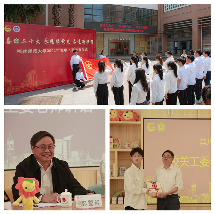 郭警修围绕共青团的历史、自身的团干工作经历以及青年学生如何学习成长、服务社会等话题与新团员交流。他分享自己在长汀支教扶贫等工作经历,希望新团员珍惜学习时光,苦练本领,用实践书写青年学子的精彩人生。他向新团员们推荐了优秀阅读书目,勉励大家多读书、读好书,并将理论与实际相结合,运用到实践中。他还向新团员赠送了《映象师大》一书。