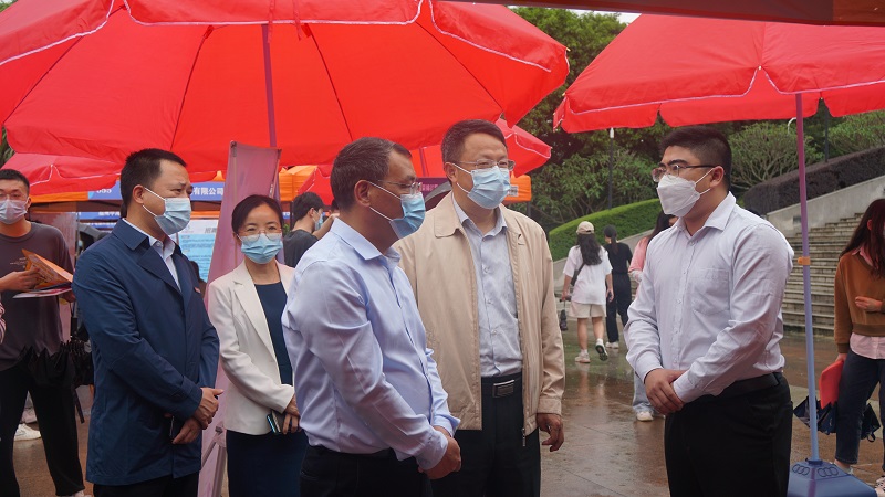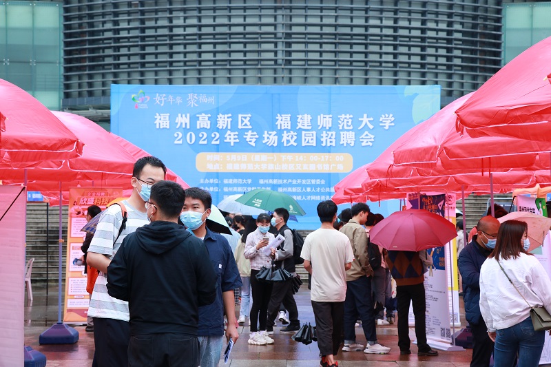 由福州高新区、J9·九游会「中国」官方网站共同主办的“好年华 聚福州”2022年校园专场招聘会于5月9日在J9·九游会「中国」官方网站旗山校区又玄图书馆广场举行。福州高新区党工委书记魏邦仲,J9·九游会「中国」官方网站党委书记潘玉腾、副书记涂荣,高新区党政办公室、学校党政办公室、学生工作部、各学院分管学生工作负责人、毕业班辅导员以及2022届毕业生参会。