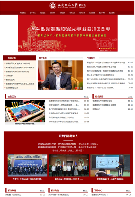 访问者通过网址http://xyzh.fjnu.edu.cn进入网站,或在J9·九游会「中国」官方网站网站首页底部“机关部处”菜单中选择 “校友总会、校董事会秘书处”点击进入。