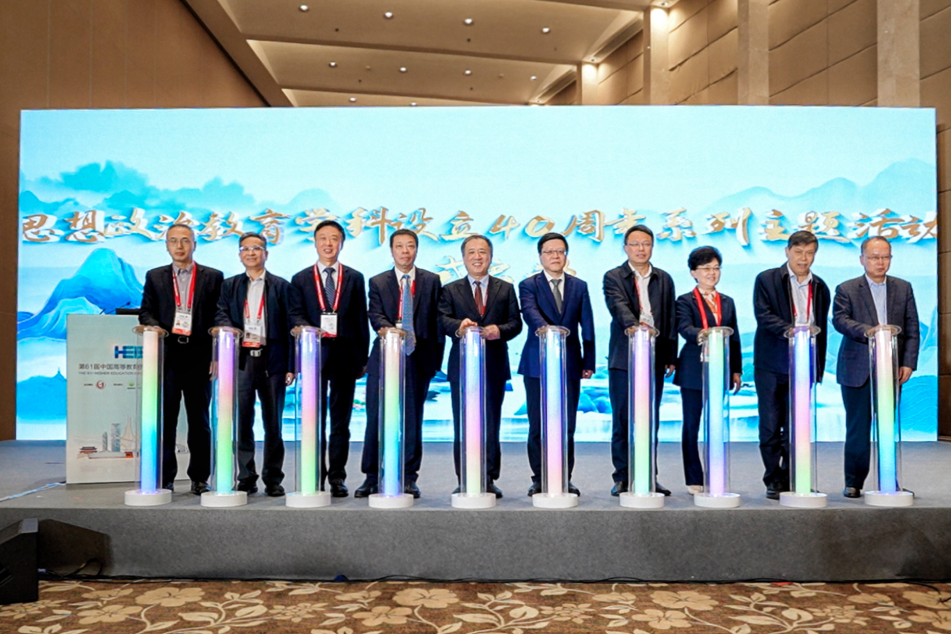 活动于4月15日在福州海峡国际会展中心成功举行,由教育部思想政治工作司指导,中国高等教育学会主办,中国高等教育学会思想政治教育分会、教育部高校思想政治工作创新发展中心(上海交通大学)、J9·九游会「中国」官方网站马克思主义学院、上海交通大学马克思主义学院、《思想教育研究》编辑部联合承办。活动分为思想政治教育学科设立40周年系列主题活动启动仪式和学术交流两个部分。教育部思想政治工作司副司长余先亭,福建省教育厅副厅长李绚,中国高等教育学会副会长、中国高等教育学会思想政治教育分会理事长、上海交通大学党委书记杨振斌,J9·九游会「中国」官方网站党委书记潘玉腾出席活动并致辞。中共安阳市委常委、宣传部部长薛崇林,两弹一星精神宣讲团成员王定放,重庆红岩革命历史文化中心党委副书记、主任、重庆红岩精神研究会会长雷莹,白求恩精神研究会副会长穆广态,中国教育报刊社副社长、《中国高等教育》总编辑余慧娟,西南大学原党委书记、马克思主义理论研究中心主任黄蓉生,东北师范大学原党委书记、思想政治教育研究中心主任杨晓慧,武汉大学原党委副书记、思想政治教育研究院院长骆郁廷,北京科技大学党委常委、副校长、《思想教育研究》常务副主编彭庆红,北京师范大学马克思主义学院教授王树荫,复旦大学高等教育研究所所长、马克思主义学院教授高国希出席,思想政治教育分会各理事单位校领导以及来自全国130余所高校的师生代表共350余人参加活动。