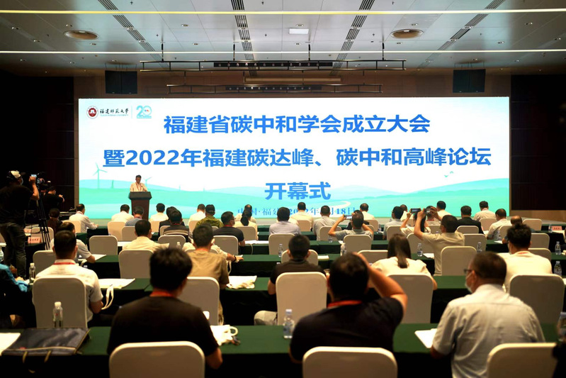 On June 18, guided by Fujian Association For Science and Technology, and Fujian Provincial Committee of China Association for Promoting Democracy, hosted by FNU and the Organizing Committee of China Cross-Straits Technology and Projects Fair (abbreviated as CSTPF), and organized by Academy of Carbon Neutrality of FNU, Fujian June 18th Industrial Development Co., Ltd., and the Innovation Research Center of Carbon Neutrality of Xiamen University, the inaugural meeting of Fujian Association of Carbon Neutrality and the 2022 Fujian Carbon Emission Peaking and Carbon Neutrality Summit Forum was held at the Fuzhou Strait International Conference and Exhibition Center. Yan Keshi, Deputy Director of the Standing Committee of Fujian Provincial People's Congress and Chairman of Fujian Provincial Committee of the Democratic Progressive Party, Chen Jingming, Member of The Academy of Science of the Royal Society of Canada and professor of FNU, Zhang Fushou, Deputy Director of Fujian Provincial Development and Reform Commission, Huang Shu, Deputy Director of Fujian Provincial Department of Science and Technology, Xu Wei, Deputy Director of Fujian Provincial Department of Ecology and Environment, Shi Bin, Vice Chairman of Fujian Association for Science and Technology, Lin Jie, Secretary of the Party Committee and Deputy Director of Fujian Provincial Bureau of Coalfield Geology, Wu Long, Vice President of Sanming University, Pan Yuteng, Secretary of FNU Party Committee and Wang Changping, President of FNU, as well as heads of the relevant functional departments of Fujian Province, such as the Department of Education, Department of Industry and Information Technology, Department of Civil Affairs, and the Tendering Group, representatives of other associations, some member representatives of Fujian Association of Carbon Neutrality, representatives of entrepreneurs in the carbon neutrality industry and the news media attended the live event. Jiao Nianzhi, academician of Chinese Academy of Sciences (CAS) and professor of Xiamen University, attended the meeting online. The opening ceremony was chaired by Chen Qinghua, Vice President of FNU.