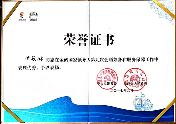 The Center’s servingthe BRICS Xiamen Summit was honored by the CPC Fujian Provincial Committeeand Fujian Provincial People’s Government, which was a recognition for the Center’s ability to serve local economic and social development, a full display of the Center’s research ability and service ability and will help push the Center towards becoming a national high-level think tank.