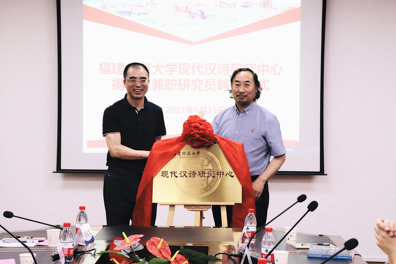 The unveiling ceremony of the Modern Chinese Poetry Research Center and the seminar on the research proposal of the major project of the National Social Science Fund of China (NSSFC) “Holistic Research on Modern Chinese Poetry” with Prof. Wang Guangming in charge was held on Cangshan Campus of FNU on June 15th. Prof. Zhang Qinghua of Beijing Normal University, Prof. Cheng Guangwei of Renmin University of China, Researcher Zhao Xifang of the Chinese Academy of Social Sciences, Prof. Wu Xiaodong of Peking University and Prof. Wang Wending of the College of Chinese Language and Literature of FNU made a committee of experts on the research proposal, with Prof. Zhang Qinghua as the chairman. Zheng Jiajian, vice president of FNU, heads of the Division of Social Sciences, and the College of Chinese Language and Literature of FNU, Wang Guangming, the chief expert of the project and a distinguished professor of FNU, and the leaders of the five sub-projects, Prof. Jiang Tao of Peking University, Prof. Zhang Taozhou of Capital Normal University, Prof. Rong Guangqi of Wuhan University, Prof. Wu Mingchun and Associate Prof. Chen Peihao of the College of Chinese Language and Literature of FNU, attended the seminar, which was conducted both online and offline.