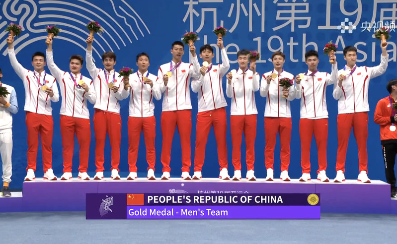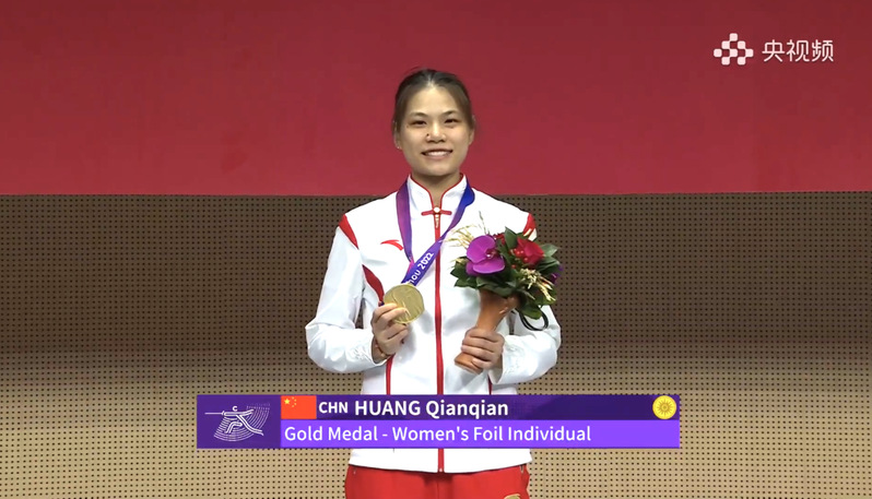 Among them, Huang Qianqian, undergraduate in class of 2025, majoring in sports training, won the gold medal in women's foil individual competition. Chen Qingyuan, undergraduate in class of 2024, Huang Qianqian, undergraduate in class of 2025, and Wang Yingying, undergraduate in class of 2027, won the women's foil team championship with their teammates. Dong Wenxin, undergraduate in class of 2026, cooperated with her teammates and won the gold medal in women's water polo, achieving four consecutive Asian Games championships and winning the ticket to the Paris Olympic Games. Ou Xuanyi, graduate student in class of 2023 with his teammates won the gold medal in man team events in badminton.