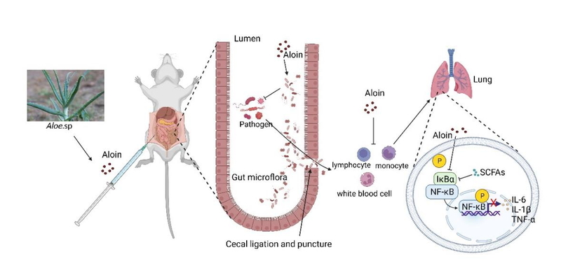 Aloin (Alo), a major compound found in aloes, has been widely recognized for its pharmacological properties, including anti-inflammatory, anti-bacterial, hypoglycemic, and antioxidant effects. However, its specific efficacy and molecular mechanisms of action in the treatment of sepsis remain unidentified. Associate Professor Su Jingqian’s research team constructed a mouse model closely resembling the clinical course of sepsis in humans by cecal ligation and puncture (CLP) to systematically evaluate the therapeutic effect of Alo and its underlying mechanisms.
