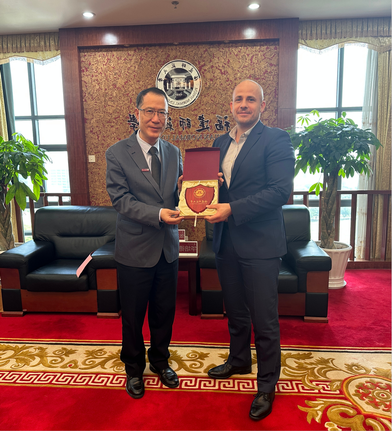On April 28th, a delegation led by Hungarian Consul General in Guangzhou, Mr. Peter Varfi, and Commercial Consul, Mr. Venato Horvath, visited Fujian Normal University (FNU). President Wang Changping welcomed the guests, accompanied by representatives from the Office of International Cooperation and Exchange and the School of Communication.