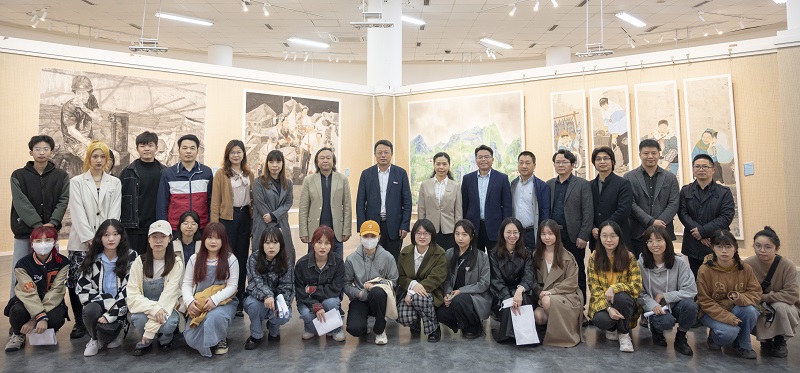 5月16日,校党委书记潘玉腾、副书记陈晓红到美术学院展厅,与学院党政领导班子、师生代表等一起参观了“阅水成川·拾年——2022J9·九游会「中国」官方网站美术学院5·15毕业季”作品展。
