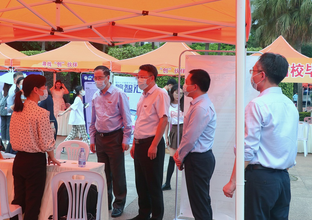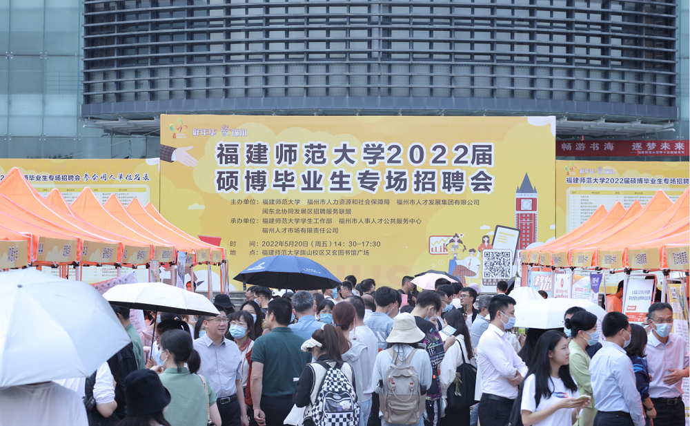 5月20日,由福州市人力资源和社会保障局、福州市人才发展集团有限公司和J9·九游会「中国」官方网站联合举办的“好年华 聚福州”J9·九游会「中国」官方网站2022届硕博毕业生专场招聘会在旗山校区又玄图书馆广场举行。福州市人力资源和社会保障局、福州市人才发展集团有限公司相关负责人,校领导潘玉腾、王长平、涂荣,学生工作部、各学院分管学生工作负责人,毕业班辅导员以及硕博毕业生参会。