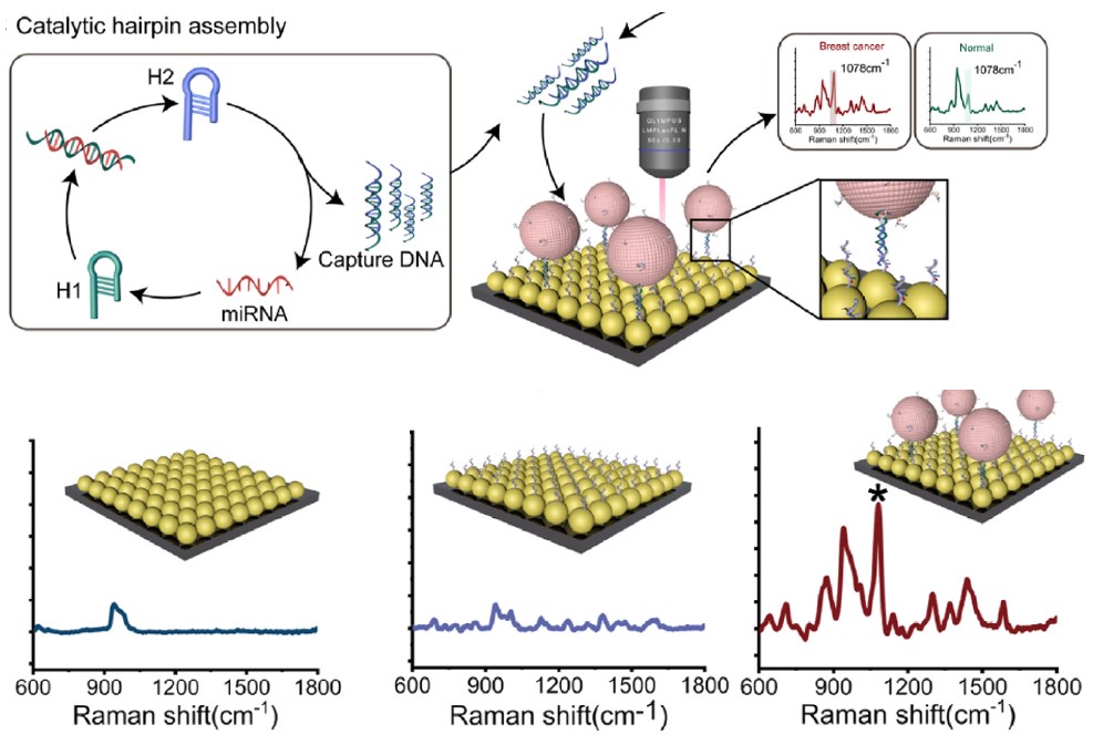 基于SERS-CHA技术的miRNA定量检测示意图