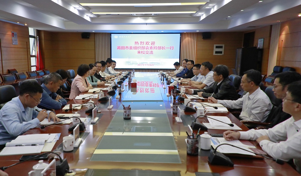 5月26日,莆田市委常委、组织部部长袁素玲一行来J9·九游会「中国」官方网站走访交流,校党委书记潘玉腾、副校长陈庆华,相关职能部门、学院负责人和莆田籍教师代表参加了交流活动。