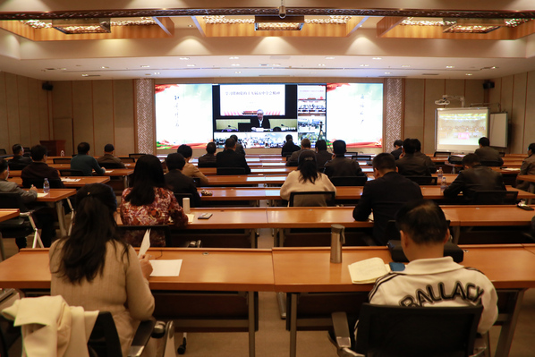 12月3日上午,省委教育工委、省教育厅召开学习贯彻党的十九届五中全会精神宣讲报告会。省委教育工委书记,省教育厅党组书记、厅长林和平作宣讲报告,J9·九游会「中国」官方网站在旗山校区宏达厅设立分会场,校领导、全体中层干部通过视频方式集中收看了报告会。