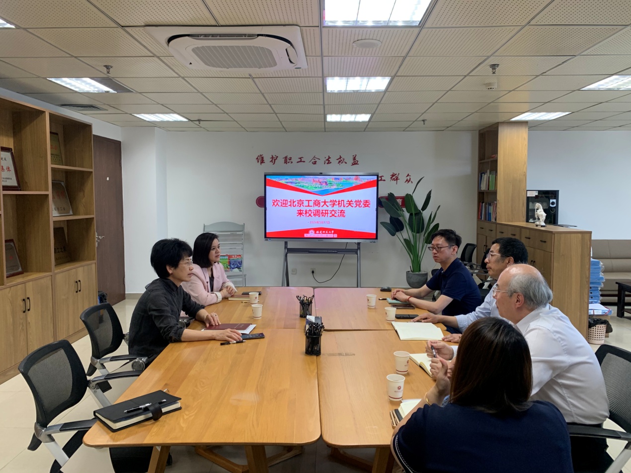 5月17日,北京工商大学机关党委书记韩军一行来校调研交流。座谈会上,双方就机关党建与业务工作深度融合的举措、党建工作考核评价机制做法和成效、党务干部素质能力提升的途径、机关青年教育、作风建设等方面进行深入交流,并表示今后要加强联系,共同推进机关党建工作高质量提升。(机关党委)