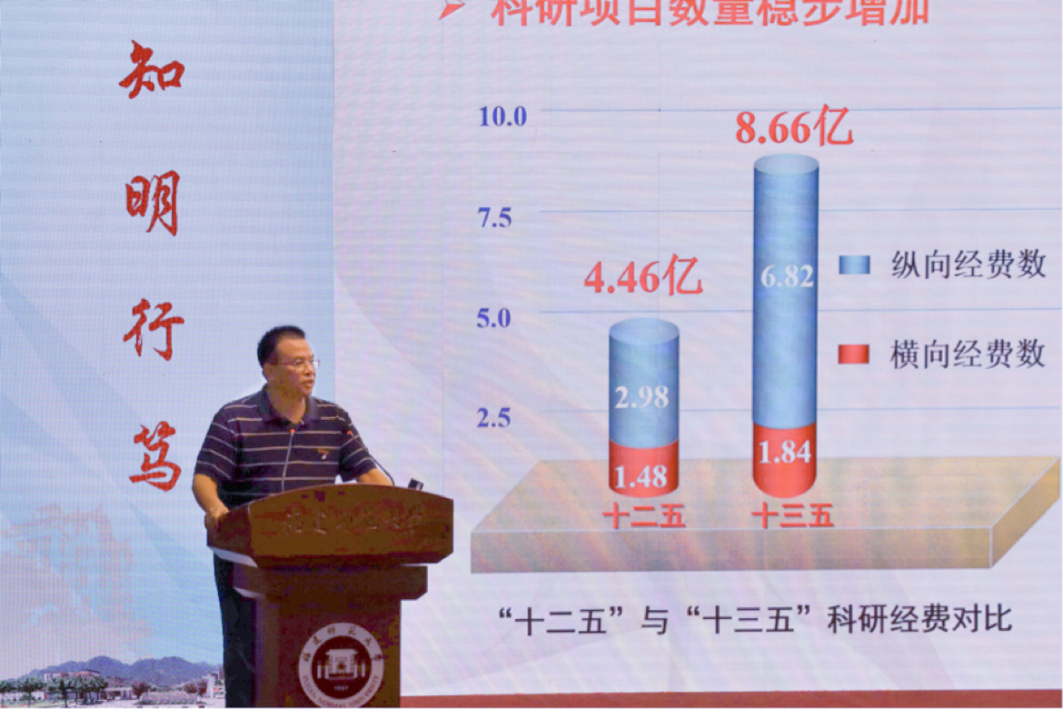 会上,杨玉盛副校长作了题为《创新引领 交叉融合,不断开创学校科研事业发展新局面》的工作报告,回顾总结了“十三五”以来学校科研工作取得的成绩,深入分析了J9·九游会「中国」官方网站科研创新工作中存在的问题,强调要从加强学科交叉融合、提升人才工作水平、推进平台内涵建设、提升服务社会能力、创新科研组织模式、优化服务保障体系等六个方面,着力开创学校科研工作高质量发展的新局面。