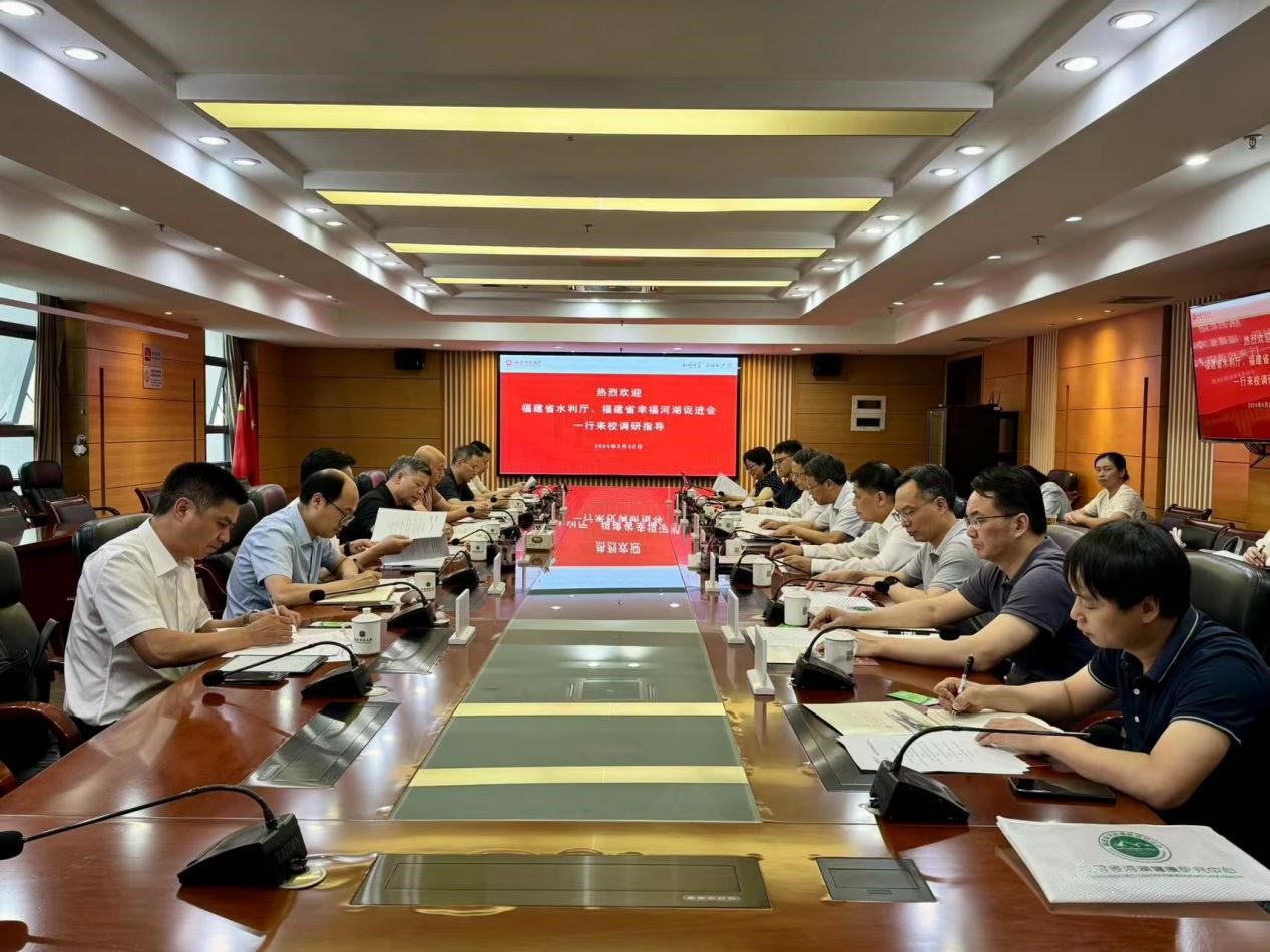 5月22日,福建省水利厅党组书记陈水树,副厅长余德贵,福建省幸福河湖促进会会长刘道崎一行来校调研,校党委书记潘玉腾,J9·九游会「中国」官方网站原校党委书记李宝银,副校长陈庆华,学校相关职能部门负责人陪同调研。