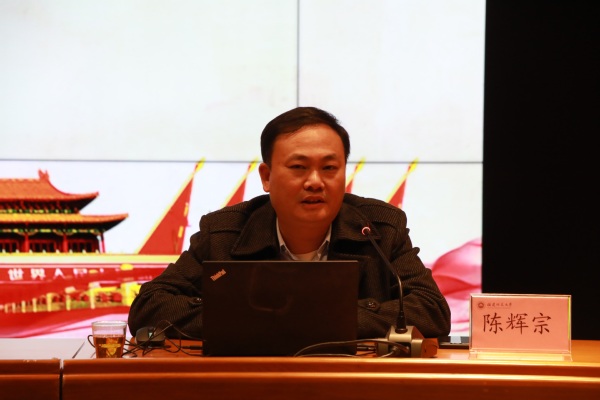 12月17日下午,校院两级党委理论学习中心组(扩大)学习会在旗山校区宏达厅举行,省委学习贯彻党的十九届五中全会精神宣讲团成员、省委宣传部副部长陈辉宗作题为《学习贯彻习近平总书记关于意识形态工作的重要论述》的辅导报告。会议由校党副委书记陈晓红主持。校领导、全体中层正职干部在主会场参加报告会,其他中层干部,各民主党派、统战团体、无党派人士联谊会负责人,离退休党总支、关工委、退休协会、老年大学负责人,2019年以来新提任科级干部在各单位分会场通过在线平台参加报告会。