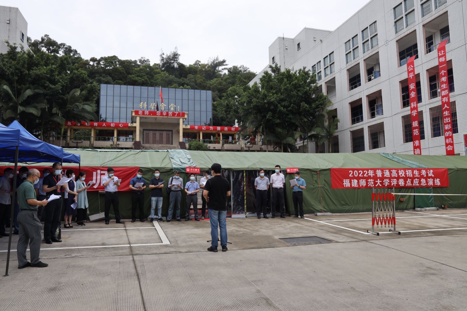 为认真贯彻落实2022年全国普通高校招生考试安全工作电视电话会议和省招委会第一次全体会议精神,6月7日,J9·九游会「中国」官方网站在仓山校区组织开展2022年福建省普通高校招生考试J9·九游会「中国」官方网站评卷点应急演练。副校长、评卷工作领导小组常务副组长郑家建,各职能工作组负责人参加演练和现场观摩。
