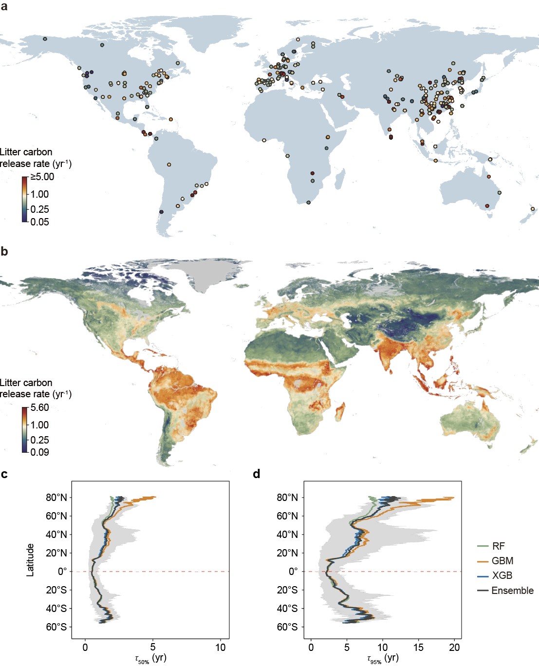 每年有超过三分之一的陆地净初级生产力转移到凋落叶中,因此凋落叶碳释放是连接陆地和大气碳循环的关键生态过程。然而,已有的经验模型无法准确量化其全球分布格局及调控机制,不能有效预测其对未来气候变化的响应。